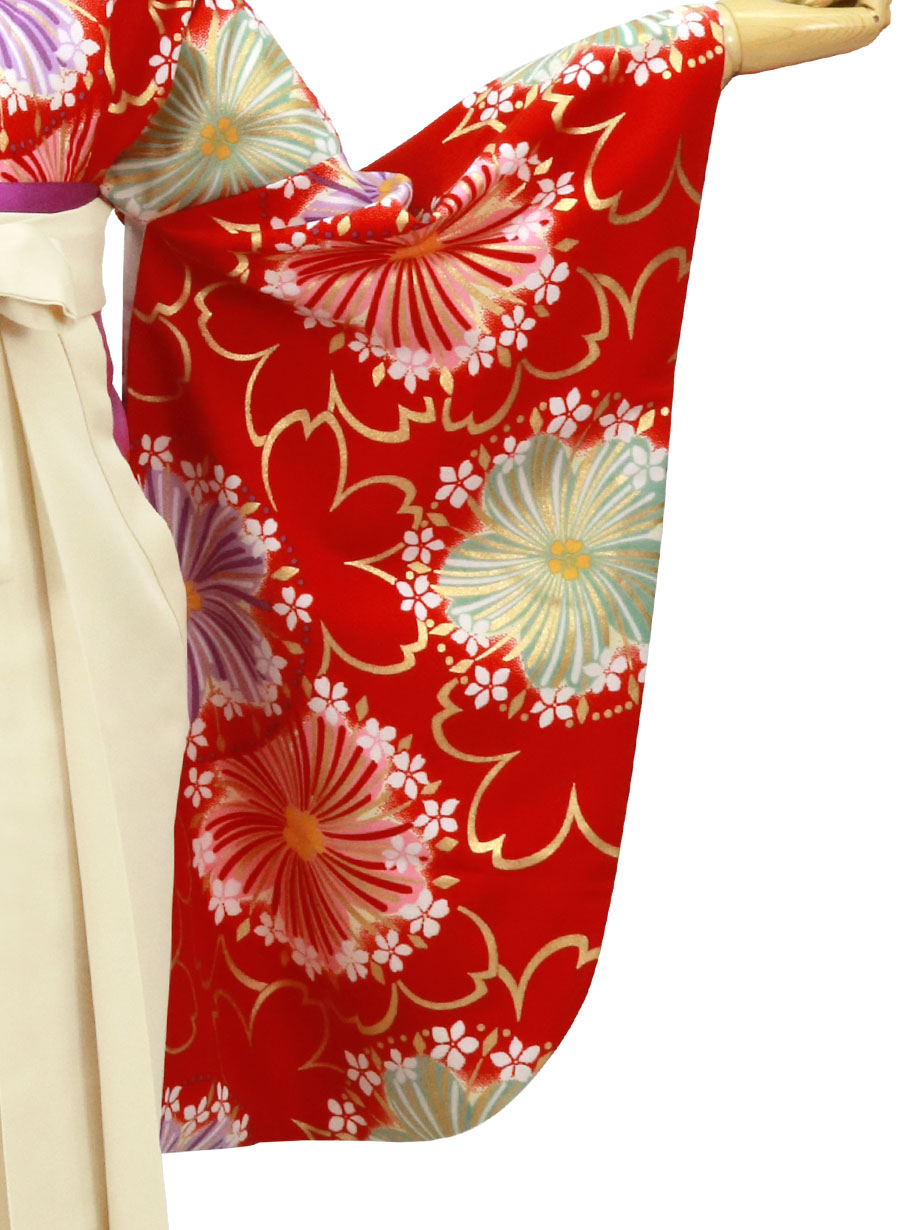 《卒業式の袴姿に》深い赤に大きな桜が鮮烈な袴セット