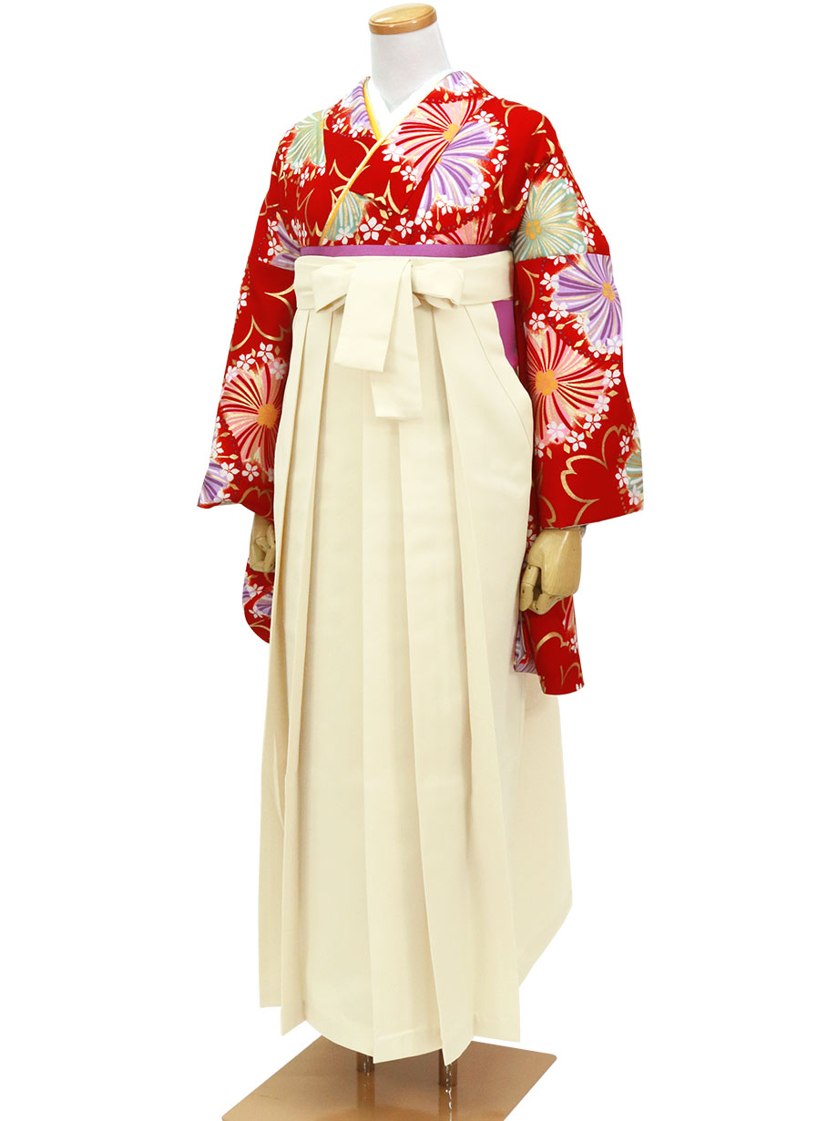 【人気セット】深緋(こきひ)地に桜柄・アイボリー袴(無地) (二尺袖)/卒業式