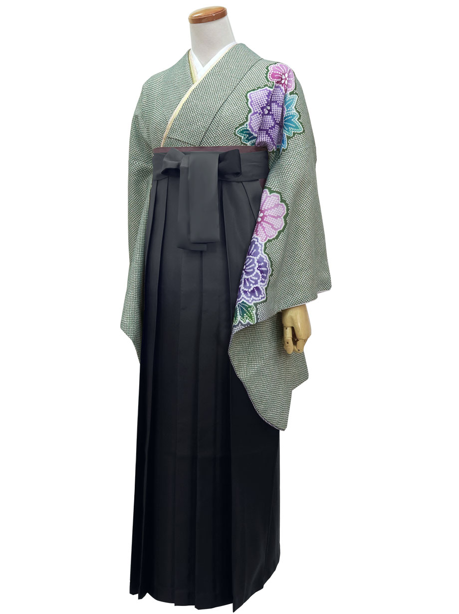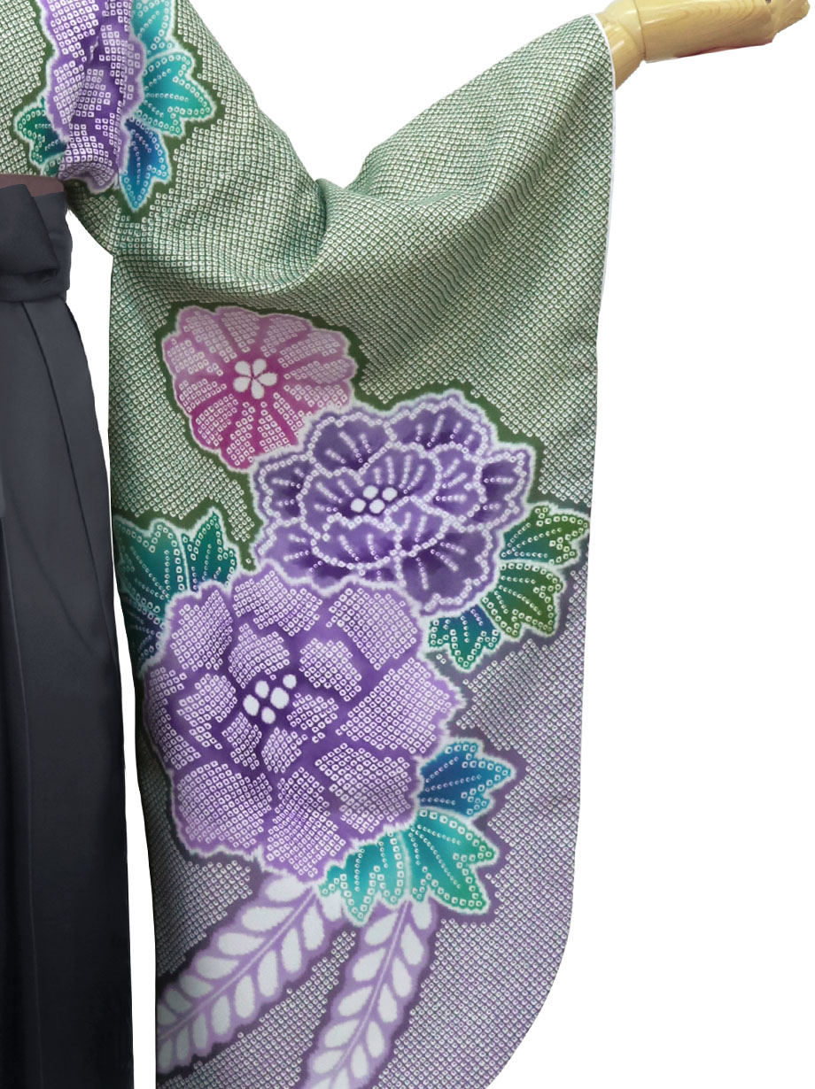 緑地に疋田牡丹・黒袴(ぼかし) (二尺袖)/卒業式