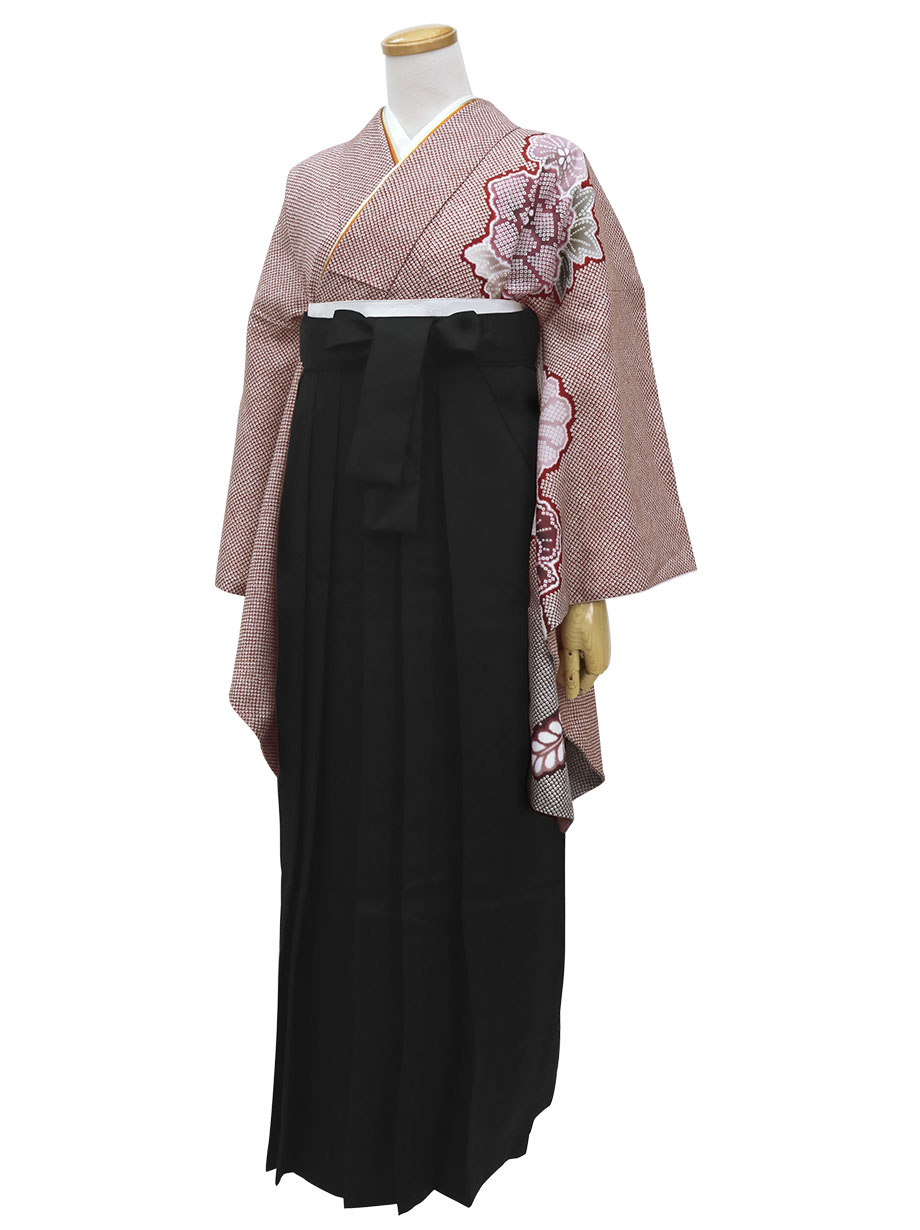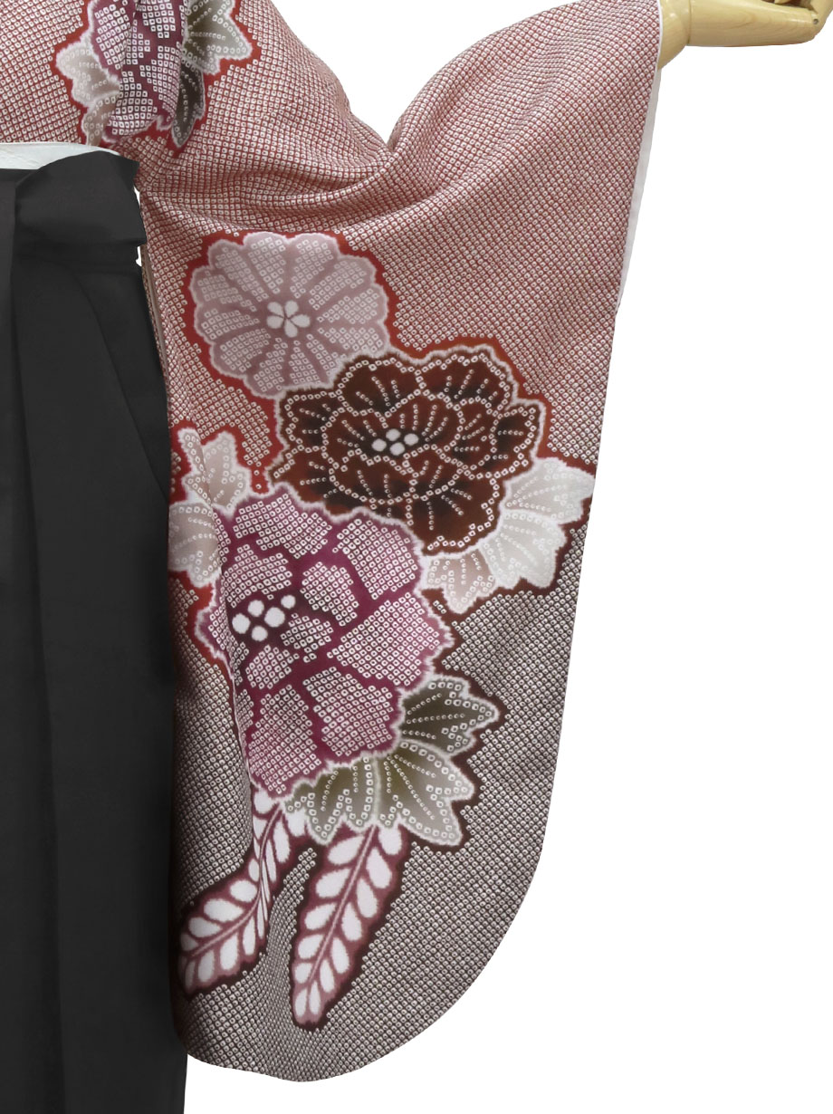赤地に疋田牡丹・黒袴(無地) (二尺袖)/卒業式