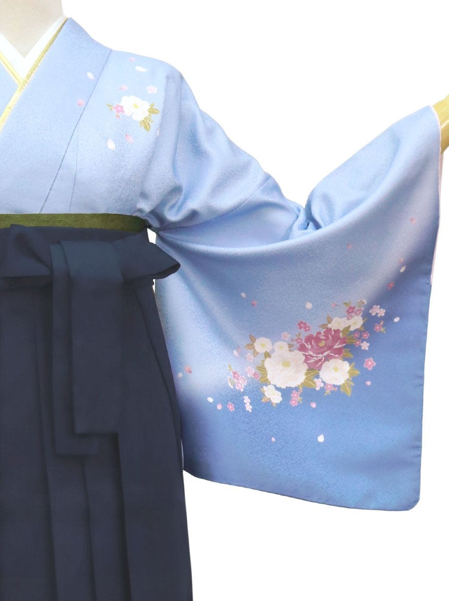【先生におすすめ】青地に牡丹・紺袴(無地) (小袖)/卒業式