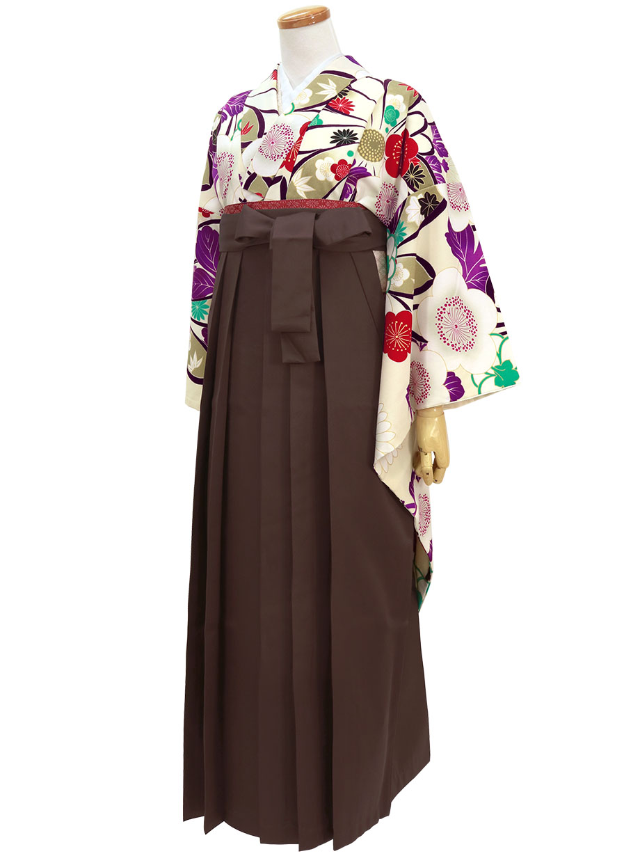 白地に菊と梅、梶の葉・茶色袴(無地) (振袖)/卒業式