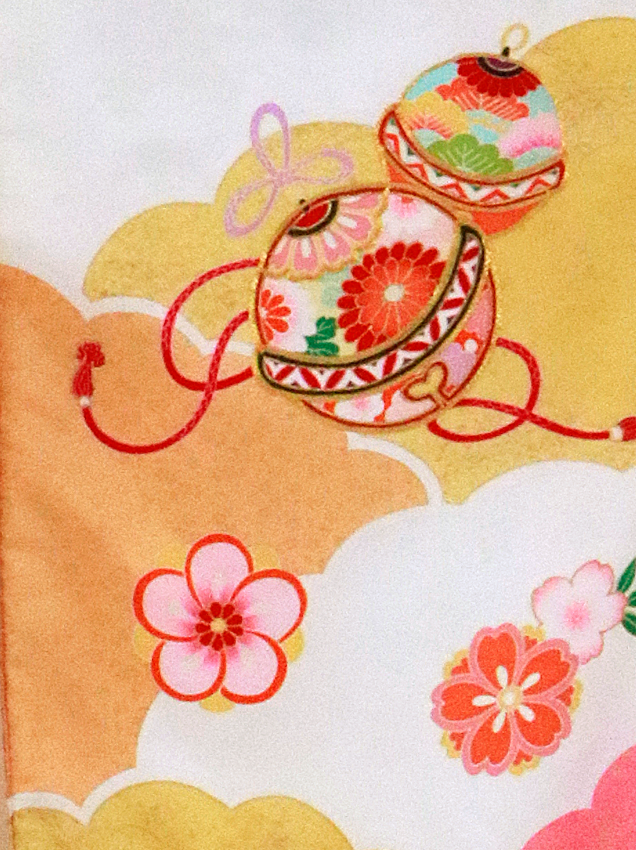 お宮参り産着/白地に雲取りと鈴の祝い着/女児