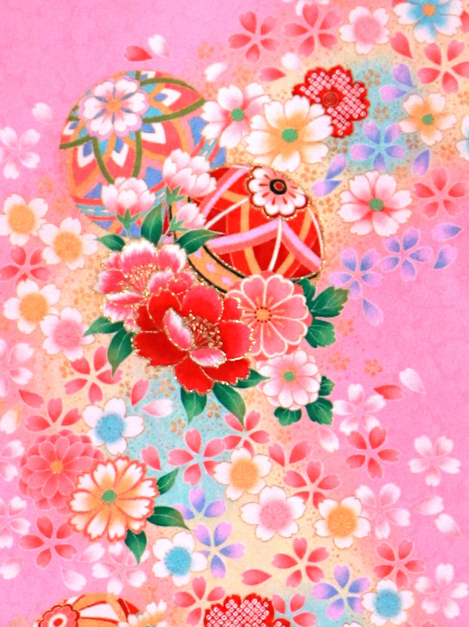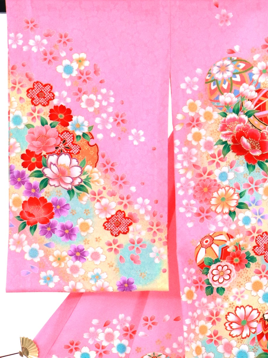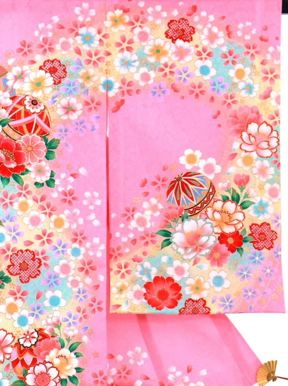 お宮参り産着/ピンク地に鞠と牡丹の祝い着/女児