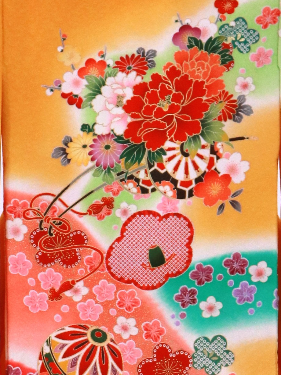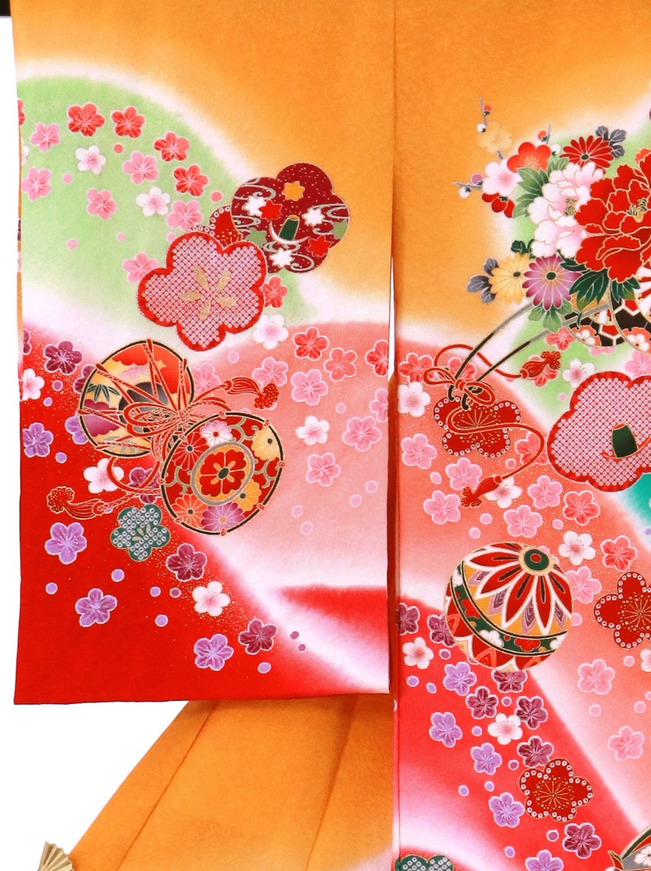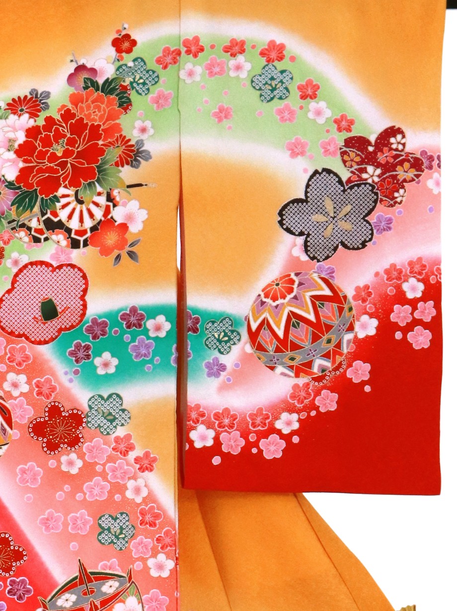 《赤ちゃんのお宮参りに》色彩豊かな山取りと桜が可愛らしい祝い着/オレンジ