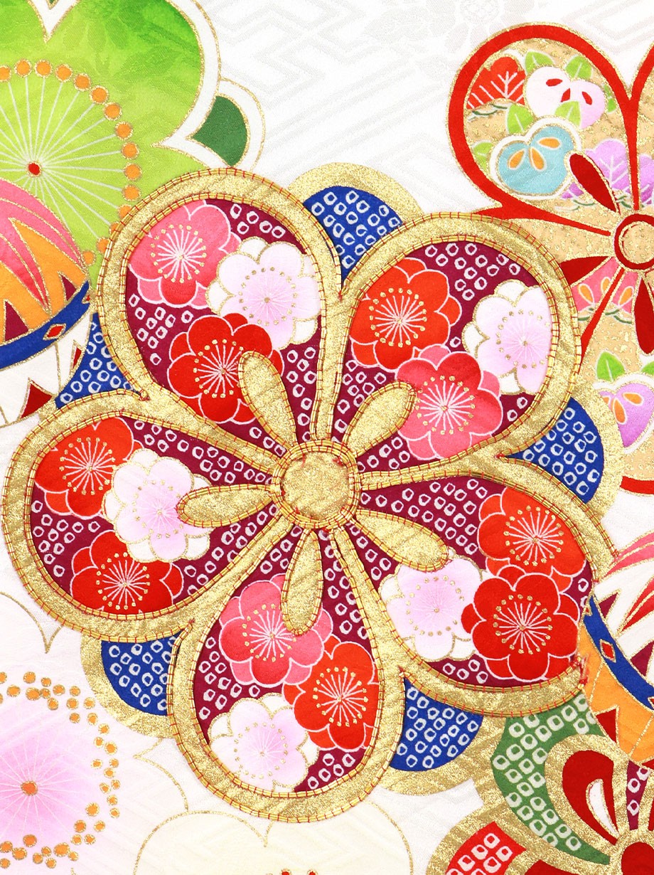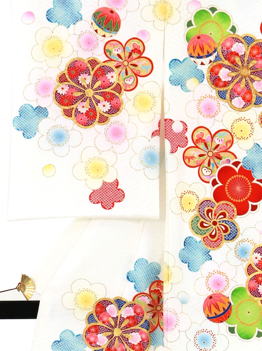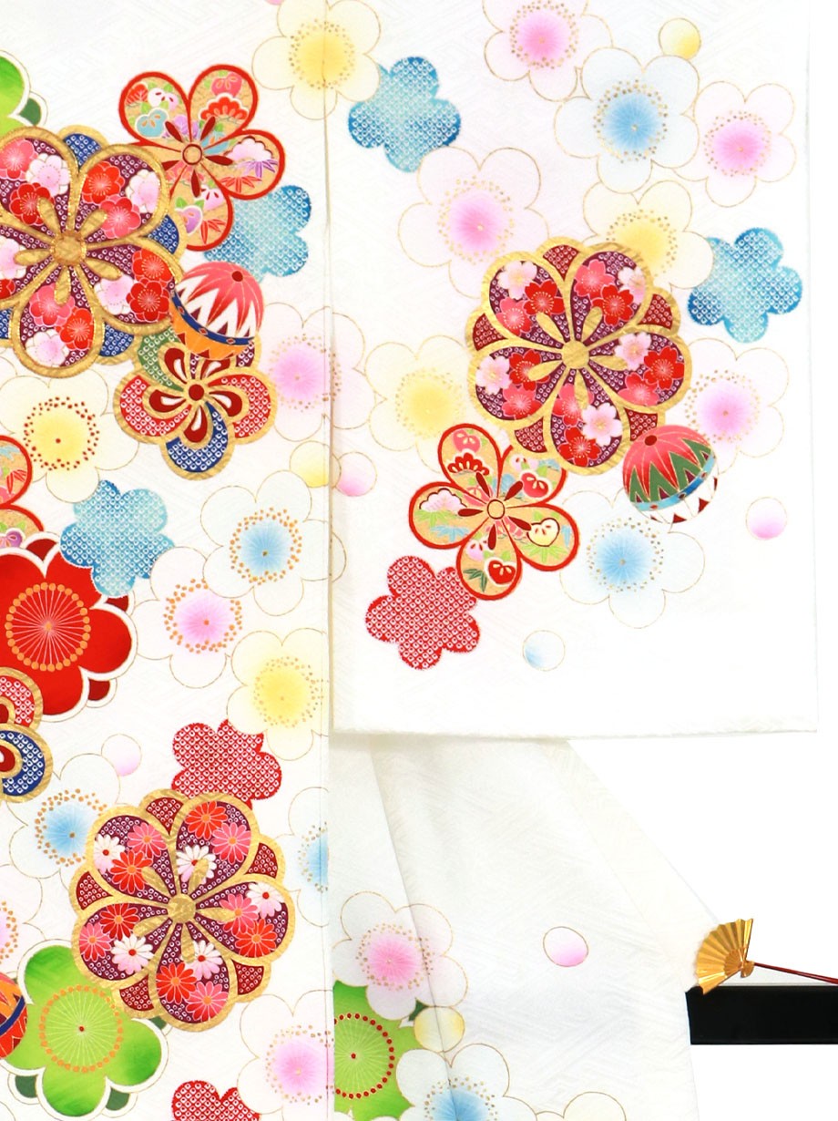 お宮参り産着/白地に梅と鞠の祝い着/女児