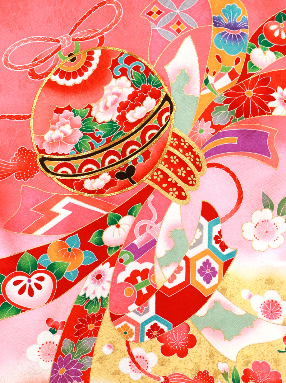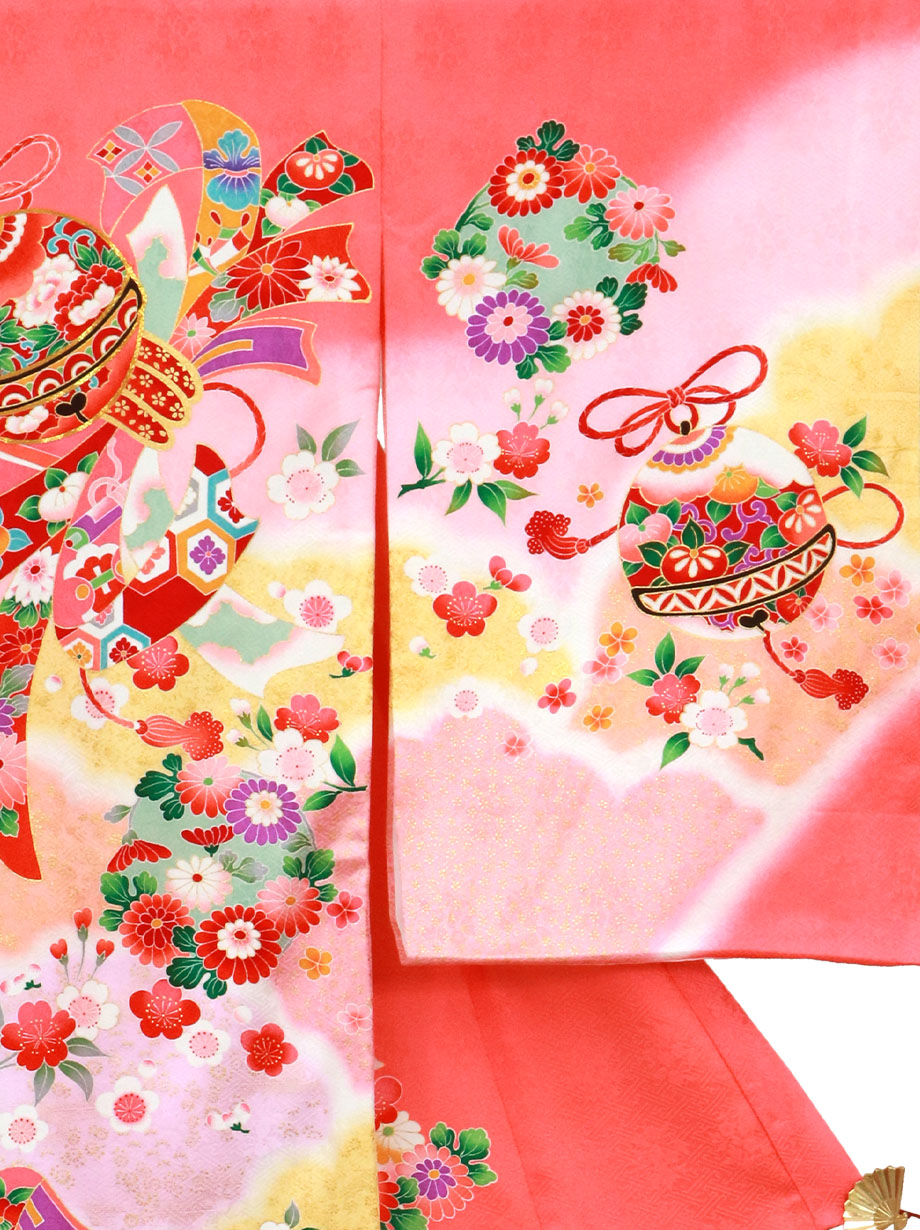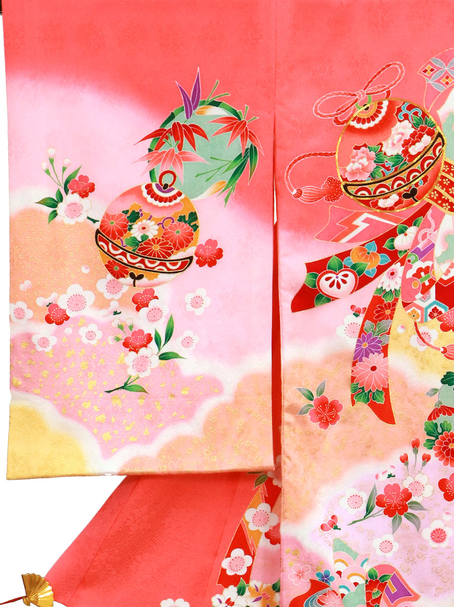 お宮参り産着/ピンク地に鈴と熨斗目の祝い着/女児