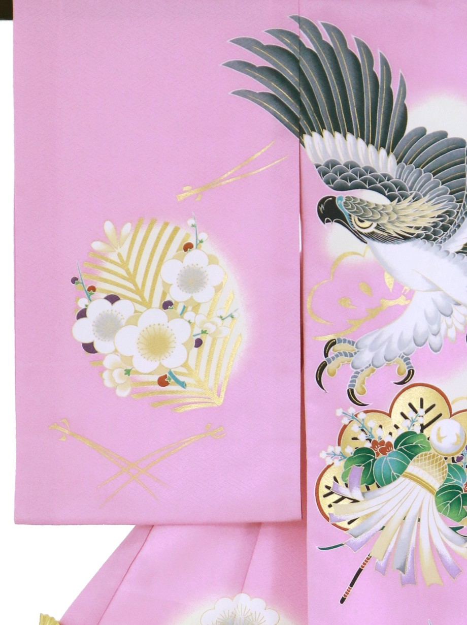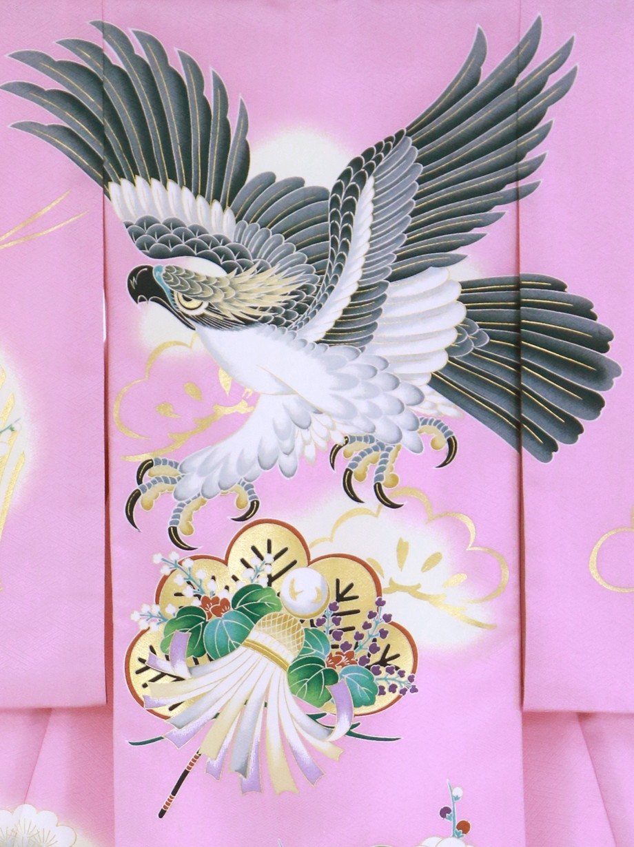 お宮参り産着/菖蒲(あやめ)色に鷹と松・梅の祝い着/男児(ポリエステル)