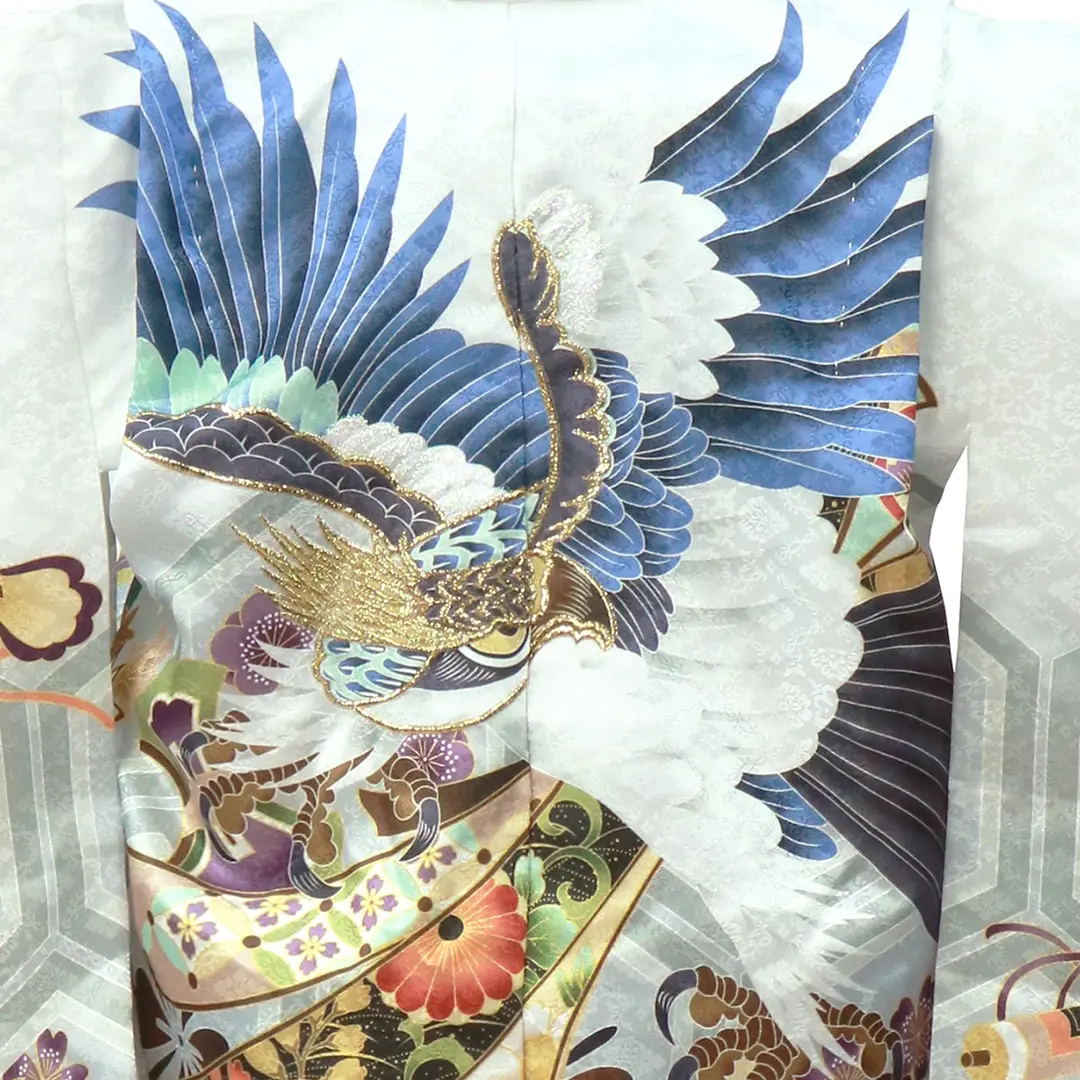 白地に鷹と束ね熨斗、黒の袴/七五三・三歳男の子・袴