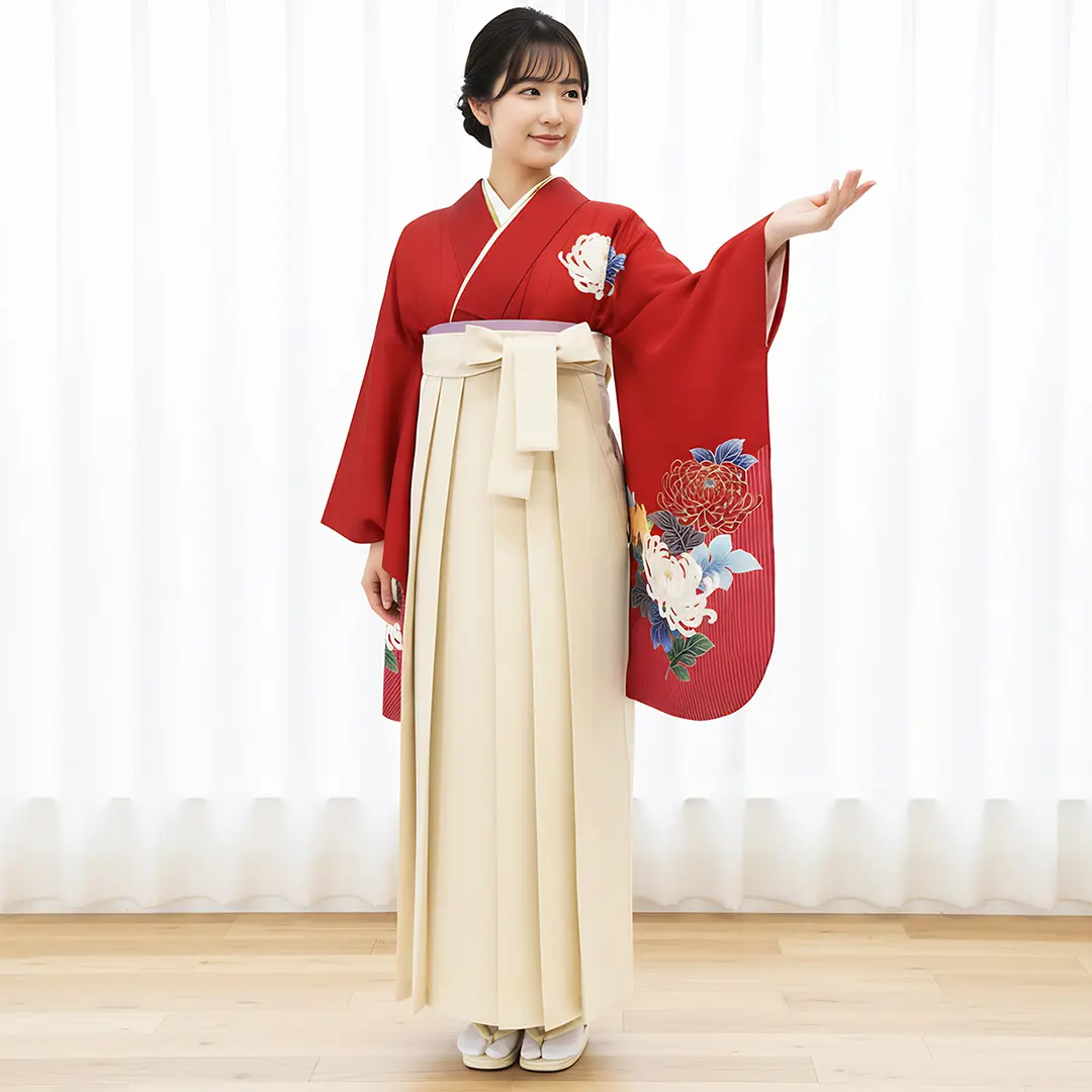 【2025年新作】真紅に白菊・アイボリー袴(無地) (二尺袖)/卒業式