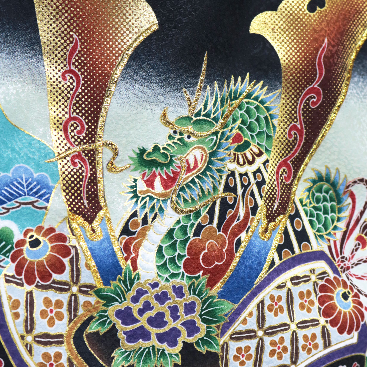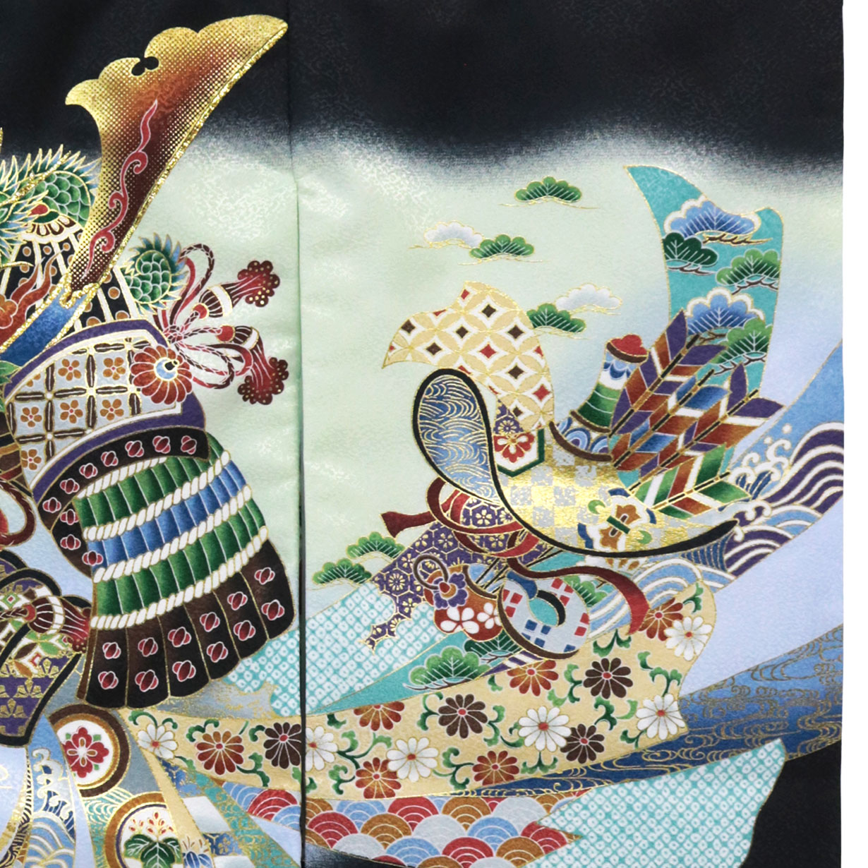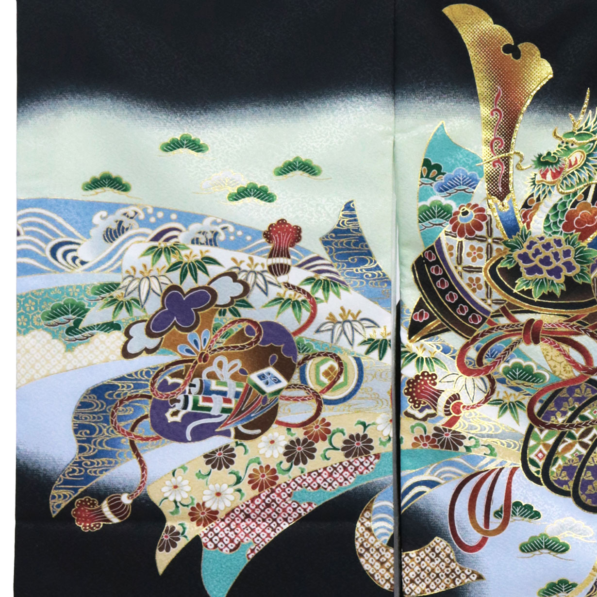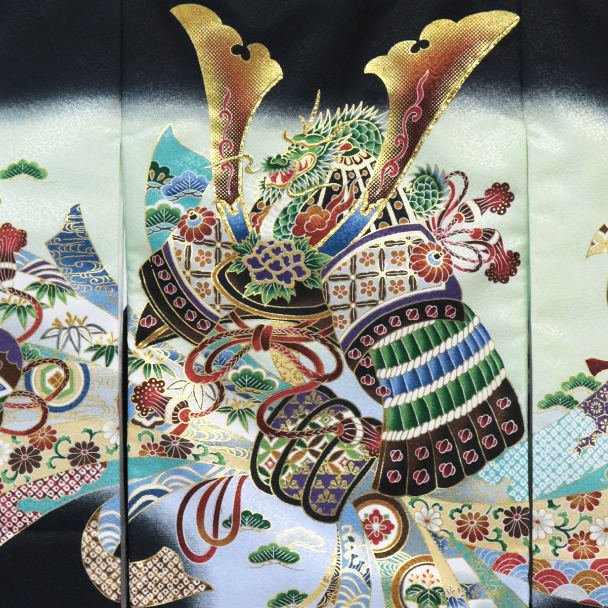 《赤ちゃんのお宮参りに》勇ましい兜柄に金彩が繊細な祝い着/ブラック